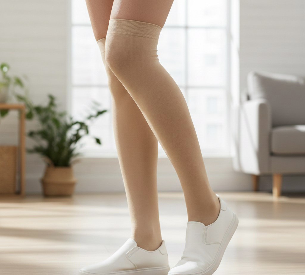 “I use compression stockings daily for work, and the adhesive makes them stay in place without irritation. Finally, a product that’s reliable and comfortable!”